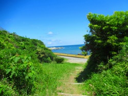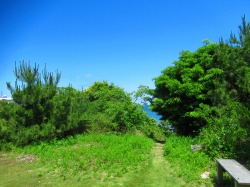 広がる海にまぶしい新緑